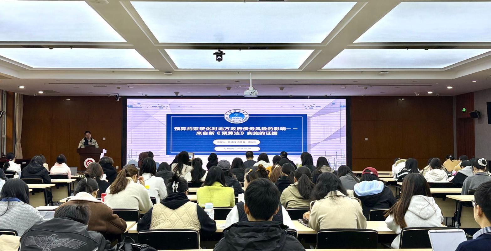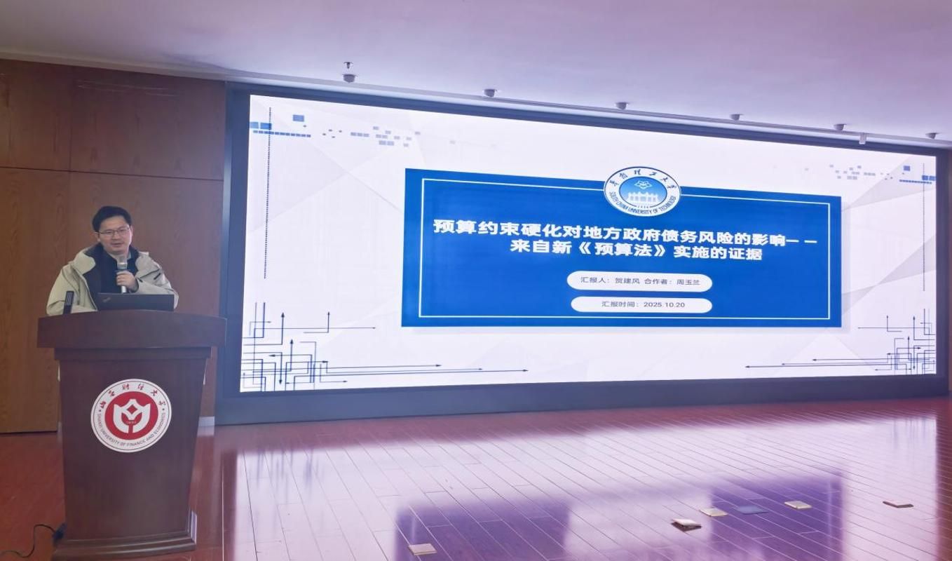 名家讲堂在图书馆东馆一层报告厅成功举行。国家社科基金重大项目首席专家、华南理工大学经济与金融学院数量经济学系主任、教授、博士生导师贺建风老师受邀作了以“预算约束硬化对地方政府债务风险的影响—基于新《预算法》实施的证据”为主题的学术讲座。贺建风教授现任广东省政协委员、民建华南理工大学支部副主委、广东省哲学社科重点实验室(数字乡村与文旅可持续发展实验室)副主任。同时,兼任中国商业统计学会常务理事、中国商业统计学会市场调查与教学研究分会常务理事、中国现场统计研究会理事、中国统计教育学会理事、广东省统计学会常务理事、广东省审计厅特约审计员、国家社科基金评审专家、广东省社科基金评审专家、广东省政府综合评标专家、广东省高级统计师评审专家等。主要研究方向为:大数据调查与经济计量分析,数字经济、共同富裕及地方债务风险统计测度与政策评估等。本次讲座由副院长陈治教授主持,学院教师与部分研究生参加讲座。